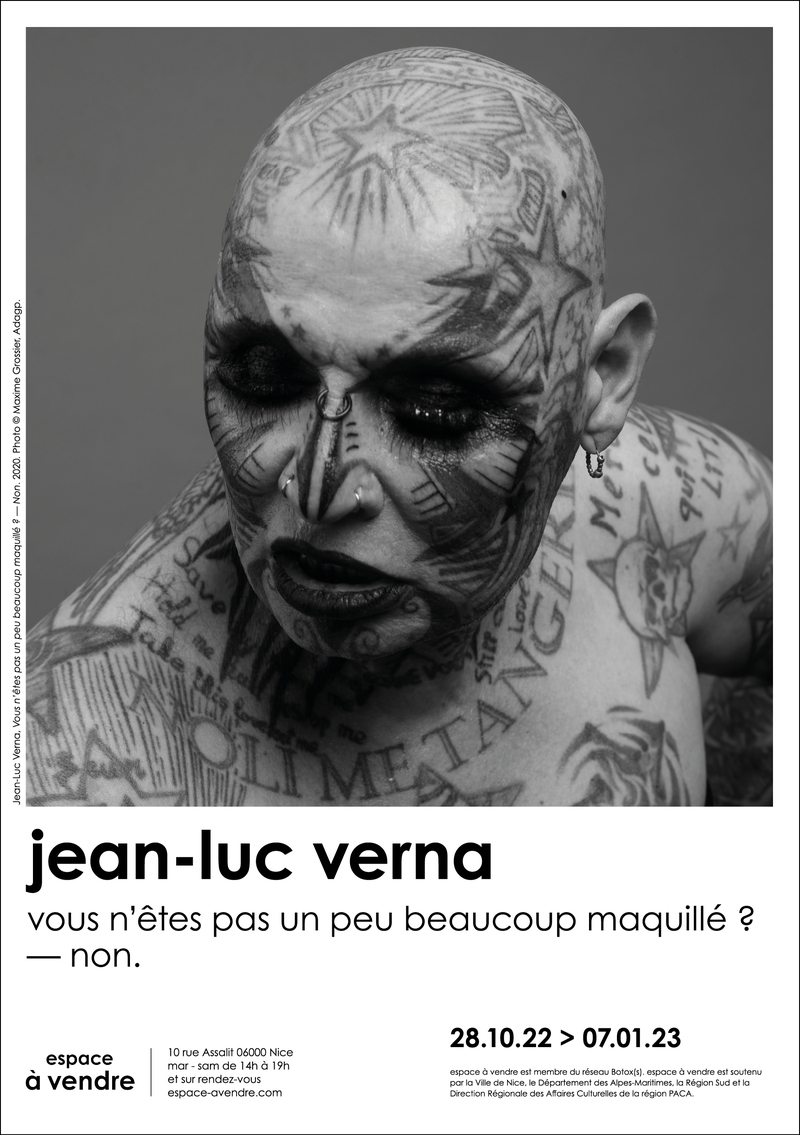 Jean-Luc Verna a bénéficié en 2016 d’une exposition monographique au Mac/Val de Vitry-sur-Seine et plus récemment à la Fondation Salomon d’Annecy. Ses dessins ont été exposés dans le cadre de la donation Guerlain au Centre Pompidou – Paris ; ainsi qu’à l’occasion de l’exposition 1984-1999 La décennie au Centre Pompidou – Metz en 2014. Il a participé à de nombreuses expositions collectives (Centrale for Contemporary Art – Bruxelles, MuCEM – Marseille, Centre Pompidou – Paris, Forde – Genève, Villa Arson – Nice, Musée d’Art Moderne de la Ville de Paris, Mac/Val, etc.)