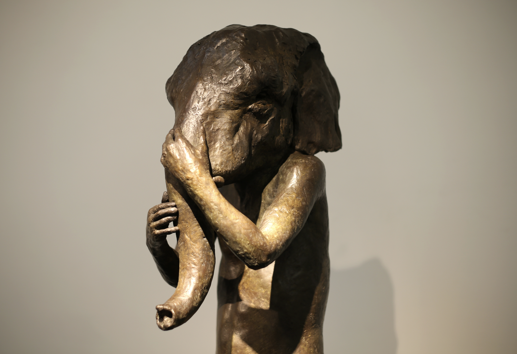 Ses figures en bronze, souvent mi-homme mi-bête, empruntent autant à la mythologie qu’à l’inconscient. L’artiste y explore les thèmes qui l’accompagnent depuis ses débuts : dualité, transformation, force et fragilité.