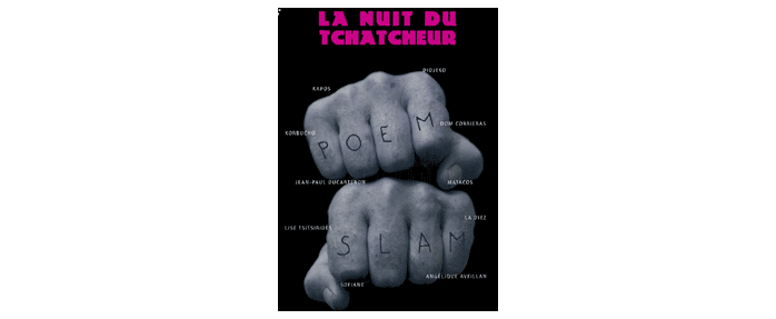 Slam, poésie, chant, scat, performances poétiques... aujourd’hui les arts de la parole se déclinent sous toutes les formes, des plus inattendues au plus jouissives. Cette première Nuit du Tchatcheur au Volume réunit la crème des poètes, slameurs et autres fiéffés performeurs venus de la Côte, de la région Paca et d’ailleurs... Jean-Paul Ducarteron, Kapos, Sofiane, Angélique Aveillan, Dom Corrieras, Korbucho, Lise Tsitsiridès, Matacos, La Diez, Didjeko... ils balancent leurs mots en rimes et en rythmes sous tous les modes, avec ou sans musique pour plus de deux heures de spectacle ininterrompu.